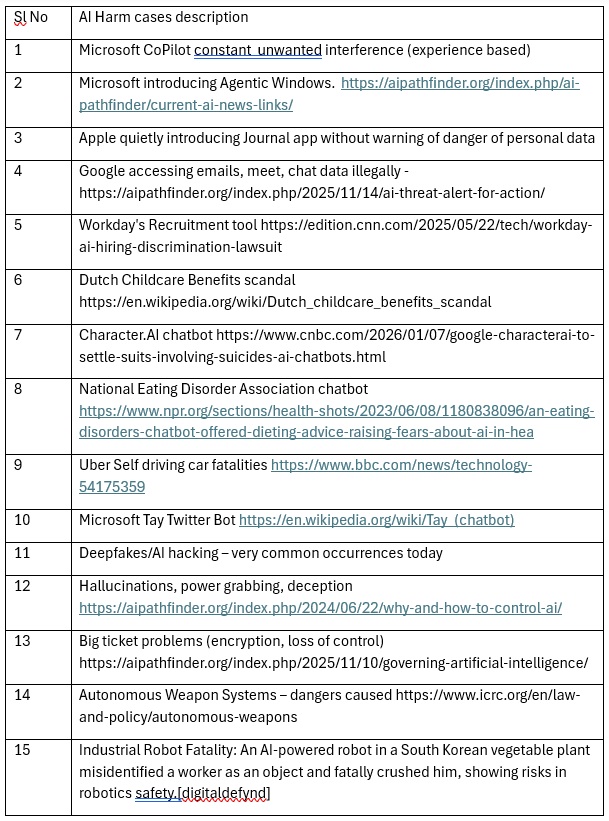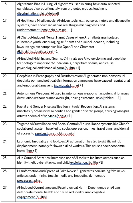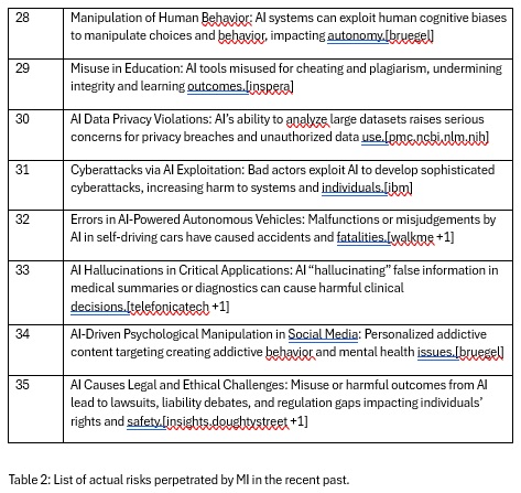 The list of these 35 cases of harm caused by MI has been mentioned in Table 2 – List of actual risks perpetrated by MI in the recent past.